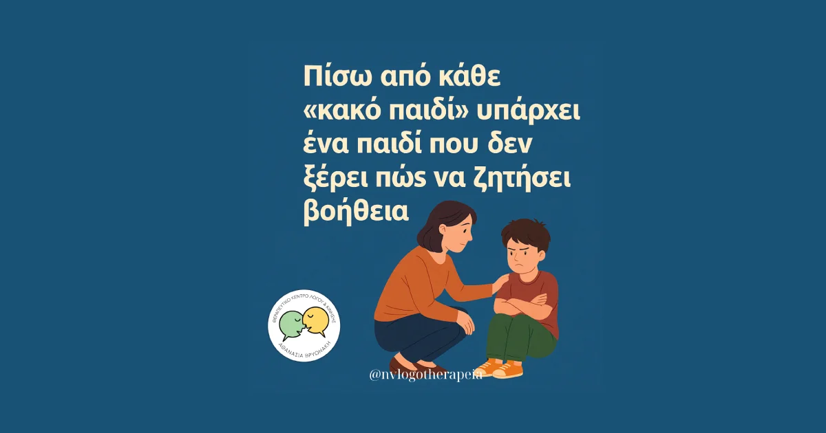Πίσω από κάθε ‘κακό παιδί’ υπάρχει ένα παιδί που δεν ξέρει πώς να ζητήσει βοήθεια.